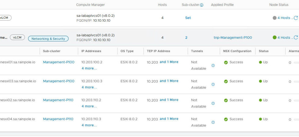 A Transport Node Profil-ok (röviden TNP) arra valók, hogy az NSX beállítások érvényesítése egy-egy ESXi cluster-re egységesek legyenek. Egy TNP szabja meg, hogy milyen Tranport Zone-ok (TZ) (overlay és/vagy VLAN), vDS beállítások, Uplink Profile (UP), TEP IP beállítások (DHCP vagy IP pool) and teaming policy...